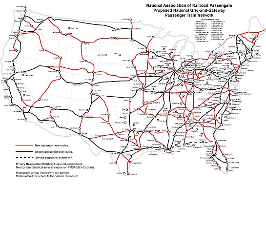 Compare the following two maps. One shows the states that would lose all intercity passenger rail service without Amtrak’s long distance trains. The other is NARP’s vision for a national network. I know which country I want to live in.
