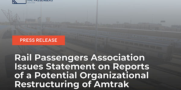 Rail Passengers Association Issues Statement on Reports of a Potential Organizational Restructuring of Amtrak